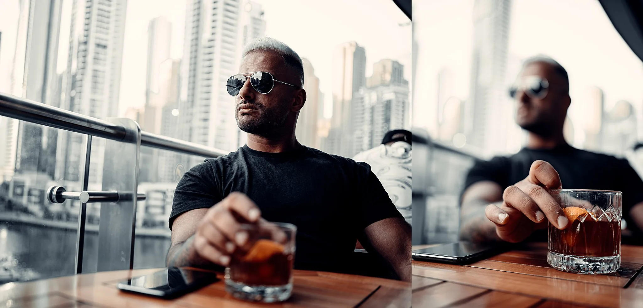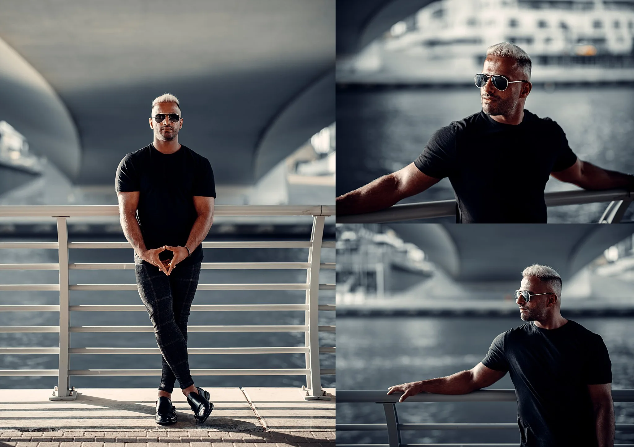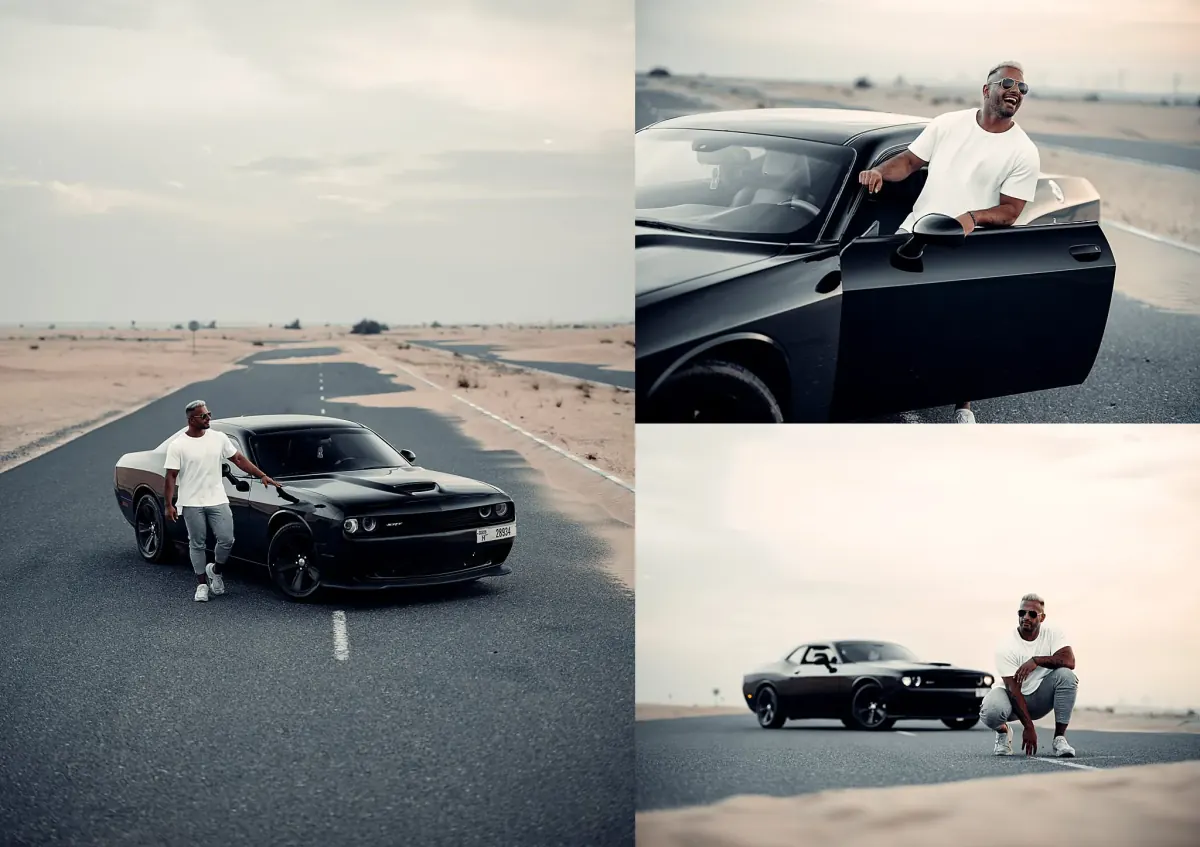 We shot in various iconic locations around Dubai, each one chosen to reflect different aspects of Rasheed’s lifestyle. From modern cityscapes to the expansive desert, every image tells a part of his story. These photos highlight not just his impressive physique but also his vibrant personality and the dynamic lifestyle he leads.